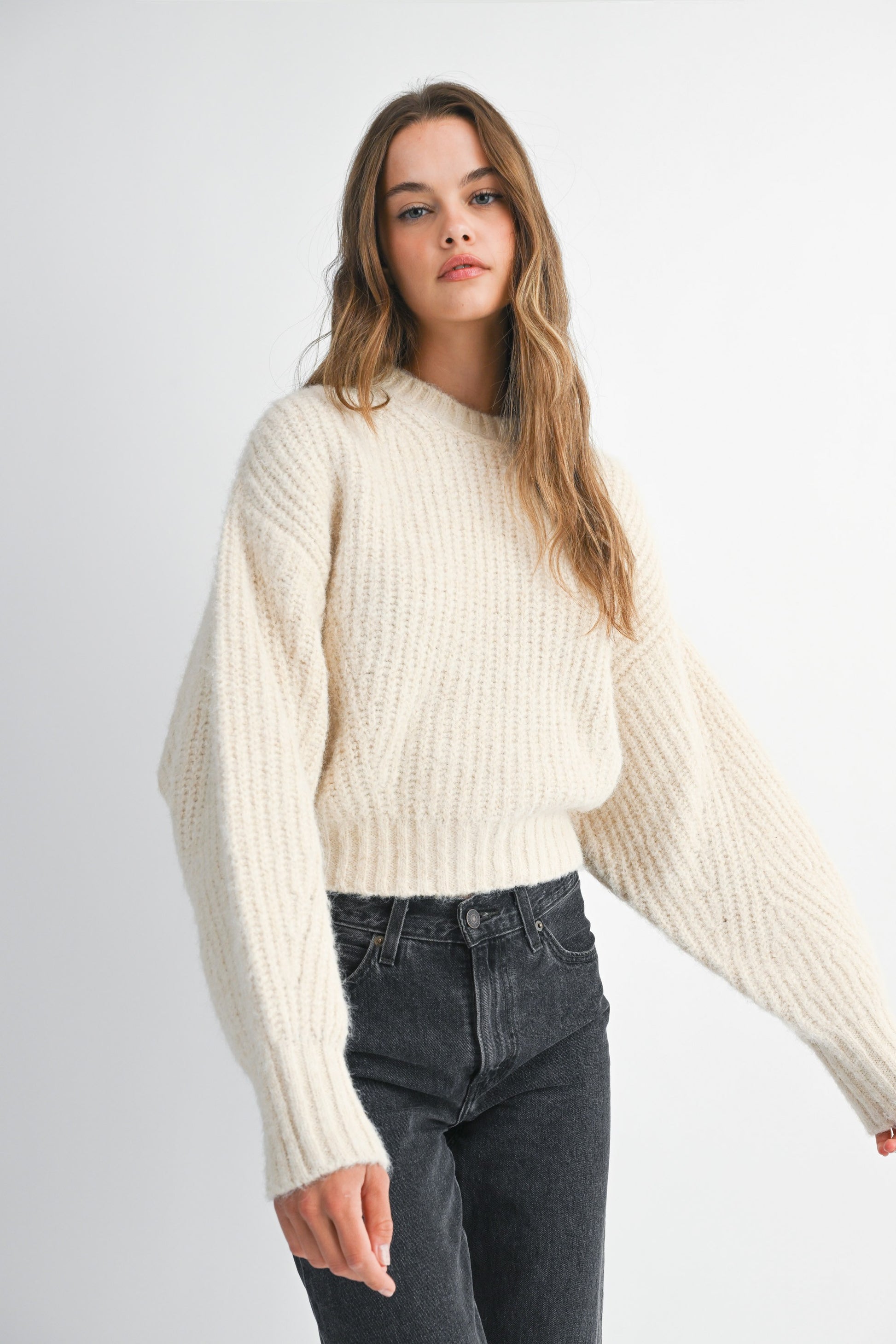 Wrap yourself in elevated comfort with The Luxe Knit Affair Sweater — your new cold-weather go-to for effortless sophistication. This creamy, cloud-soft knit features an exaggerated ribbed texture, relaxed balloon sleeves, and a cropped silhouette that flatters without trying too hard. Whether you're pairing it with high-rise denim or a fierce mini (hello, leopard print!), this sweater delivers cozy drama in all the right ways.